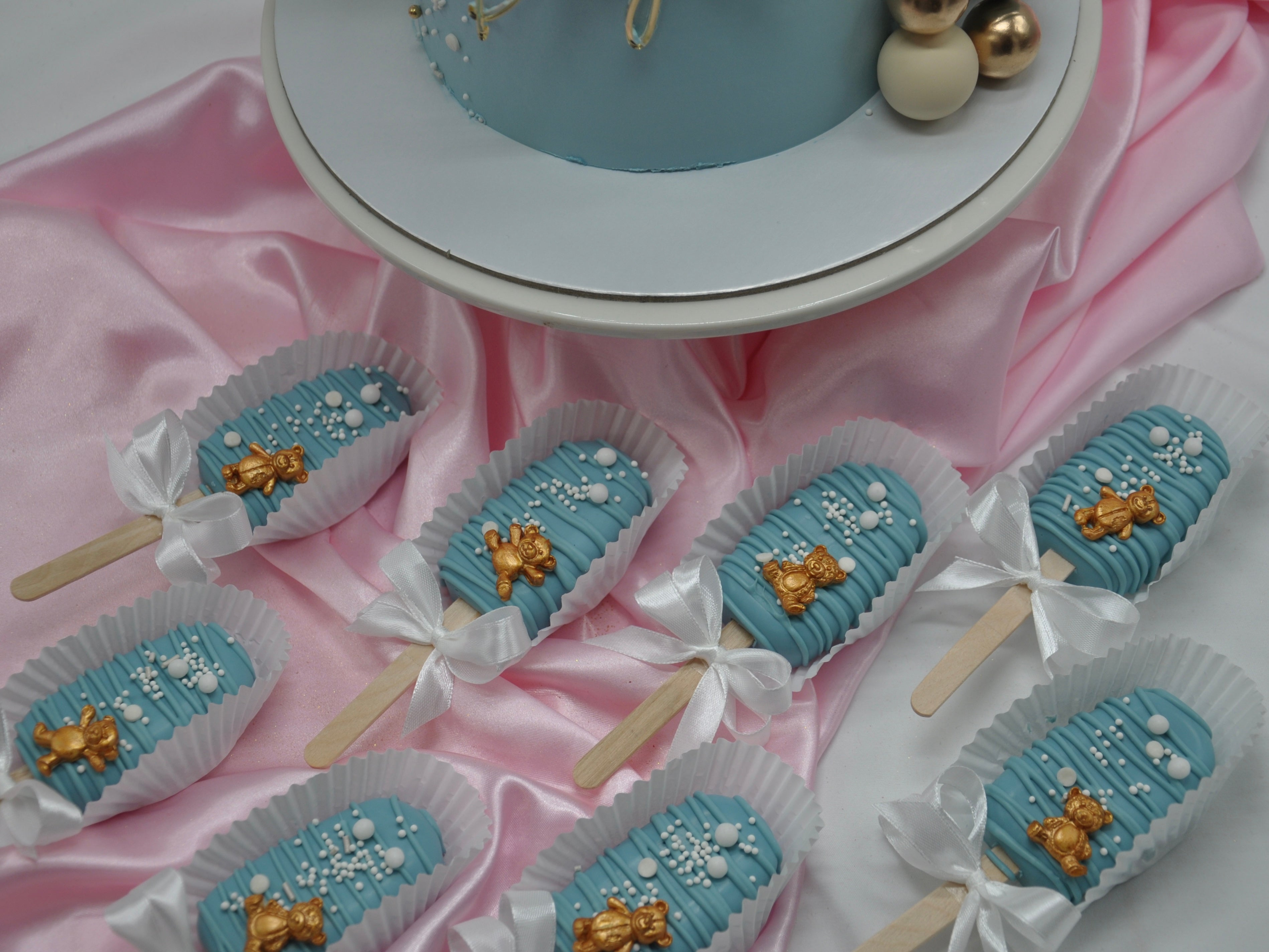 - Babyshowers & gender reveals: schattige en thematische cakesicles in zachte pastelkleuren.